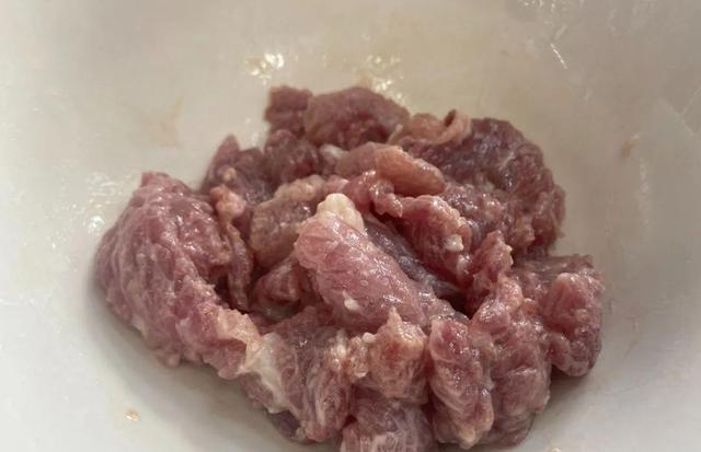 1、猪肉选梅花肉部位,雪斑纹理,口感嫩。然后将猪肉肥肉部分切掉,瘦肉切片,再加盐、胡椒粉、胡椒粉和料酒持匀,再加一勺淀粉持匀上浆,终末淋点食用油持匀。